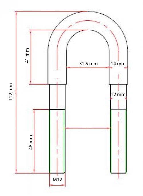 Låsbygel i rostfritt stål (AISI 316) som sedan hårdkromaterats. Produkten är godkänd av SBSC (Svensk Brand & Säkerhetscertifiering AB).