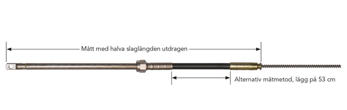 För att få rätt längd på kabeln är det viktigt att mäta rätt. Normalt mäts kabeln från infästningen i styrhuset till änden på kabeln med halva slaglängden utdragen.