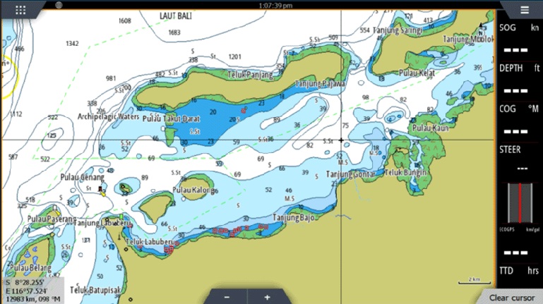 The new ENC Cartography option allows you to see a representation of the official chart created by the national hydrographic offices around the world*.