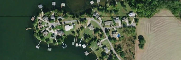 C-MAP Reveal chart - satellite image of lakeside houses and docks