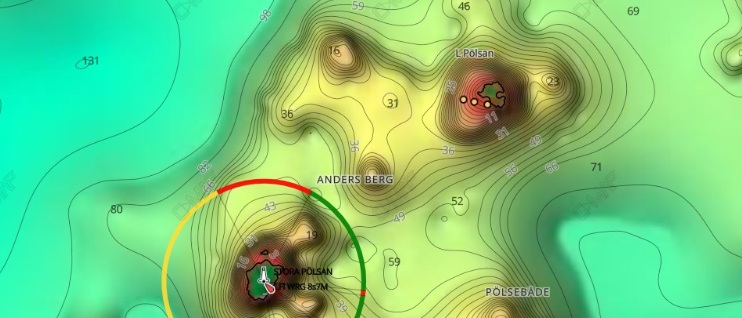 C-MAP Discover and Reveal bathymetry chart - detailed and accurate contour lines